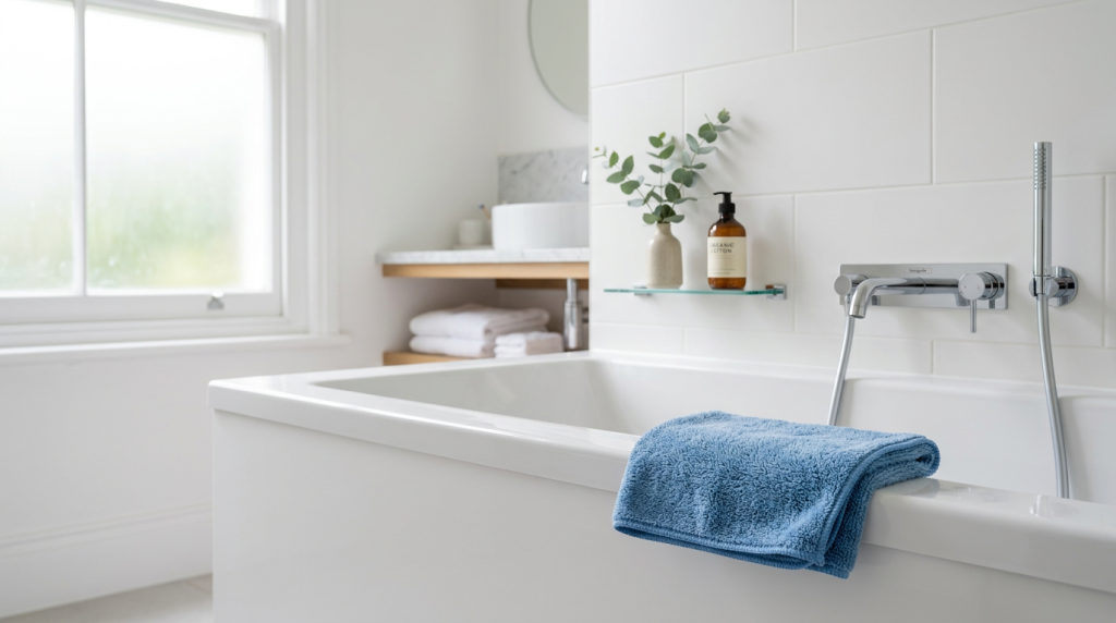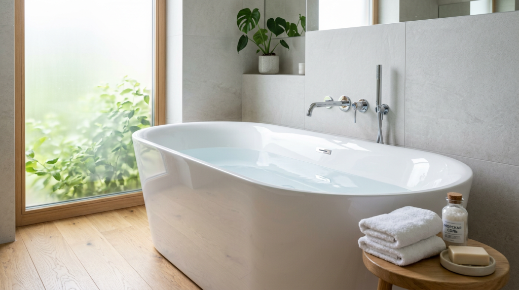 Акриловая ванна — не капризный материал, если понимать его логику. Мягкий инструмент, кислая среда против минерального налёта, сухая поверхность после каждого душа — и большинство проблем просто не успевают возникнуть.